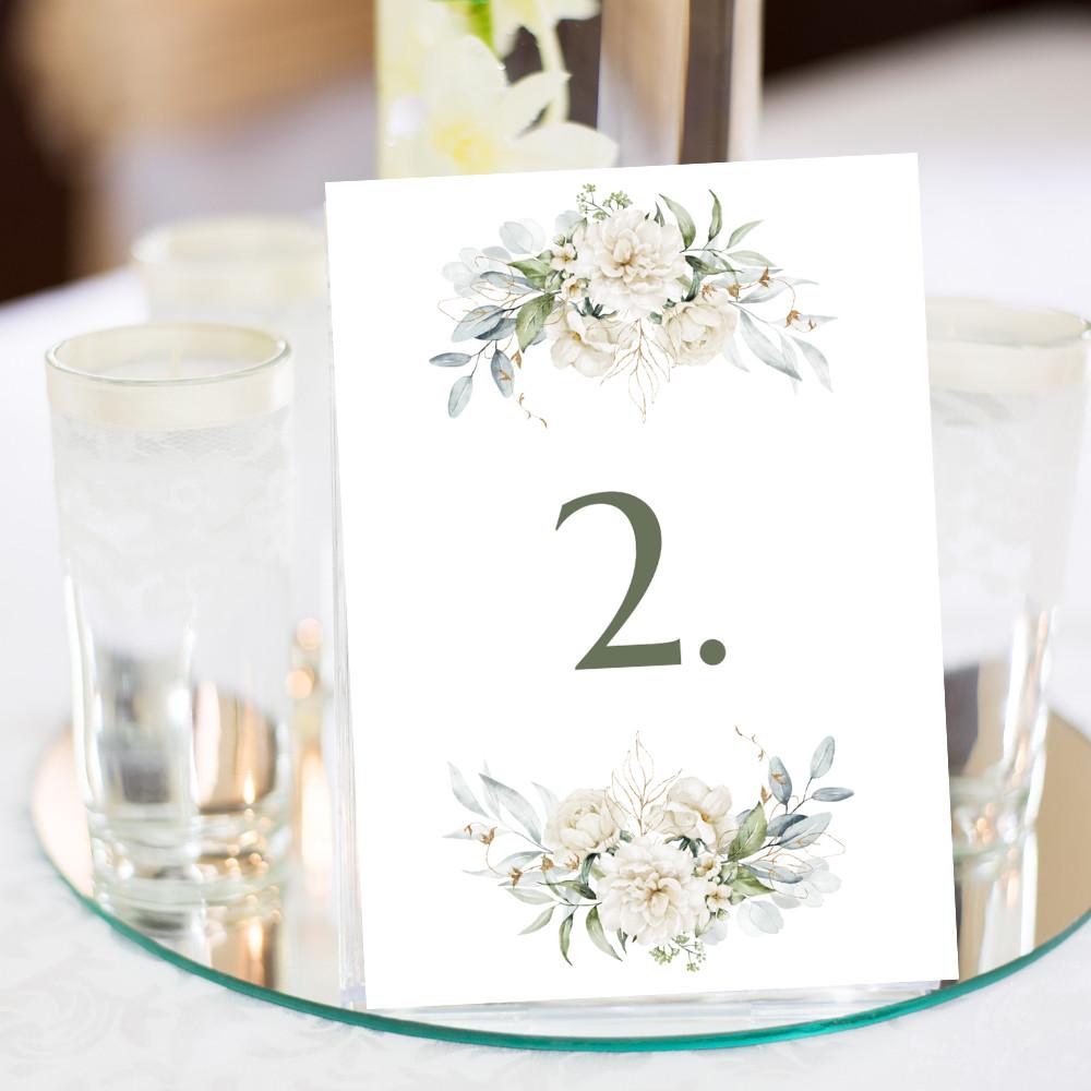- névtáblák, asztalszámok