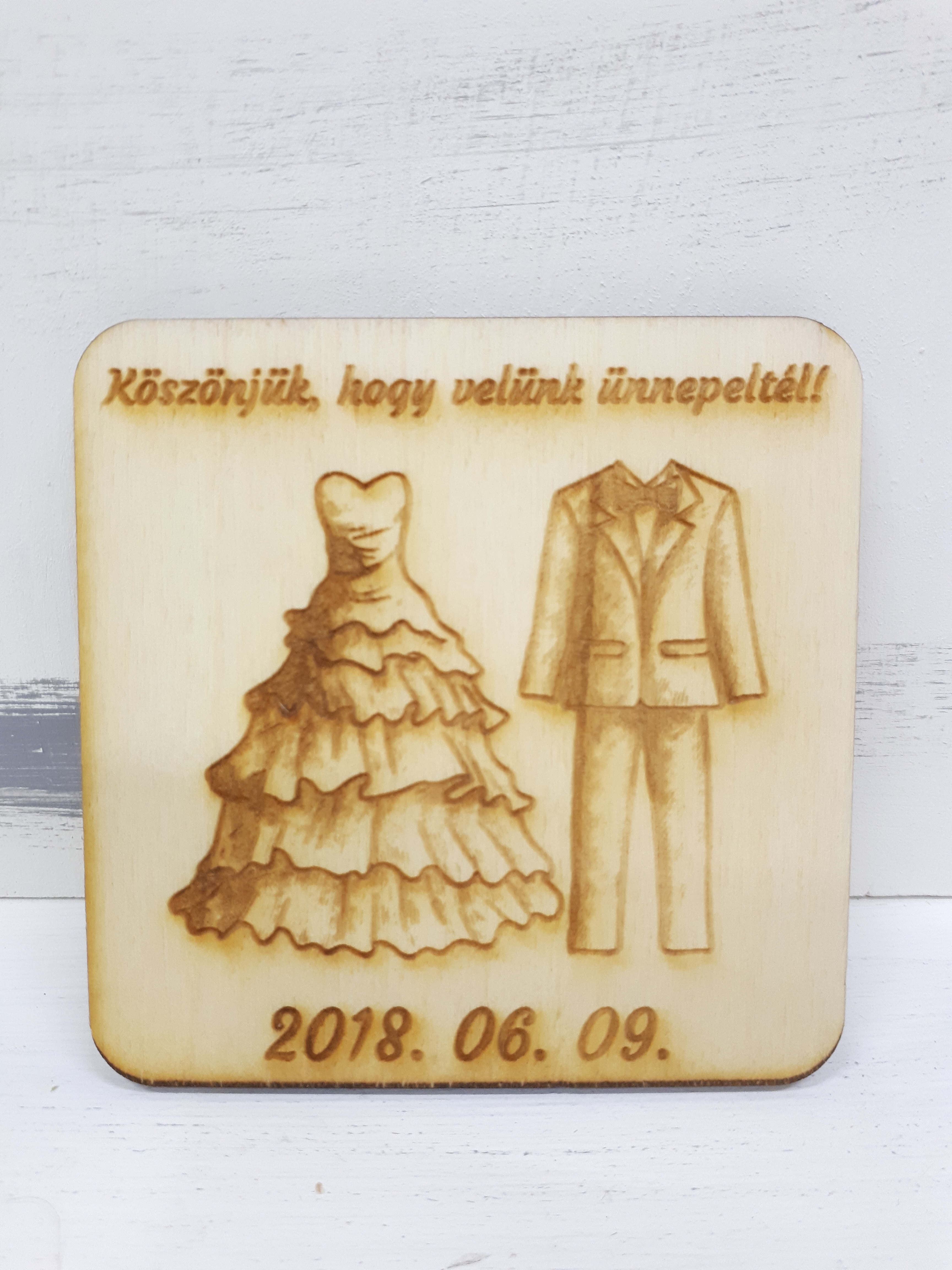 Rétegelt lemezből készült poháralátét: köszönetajándéknak vagy dekorációnak adható.