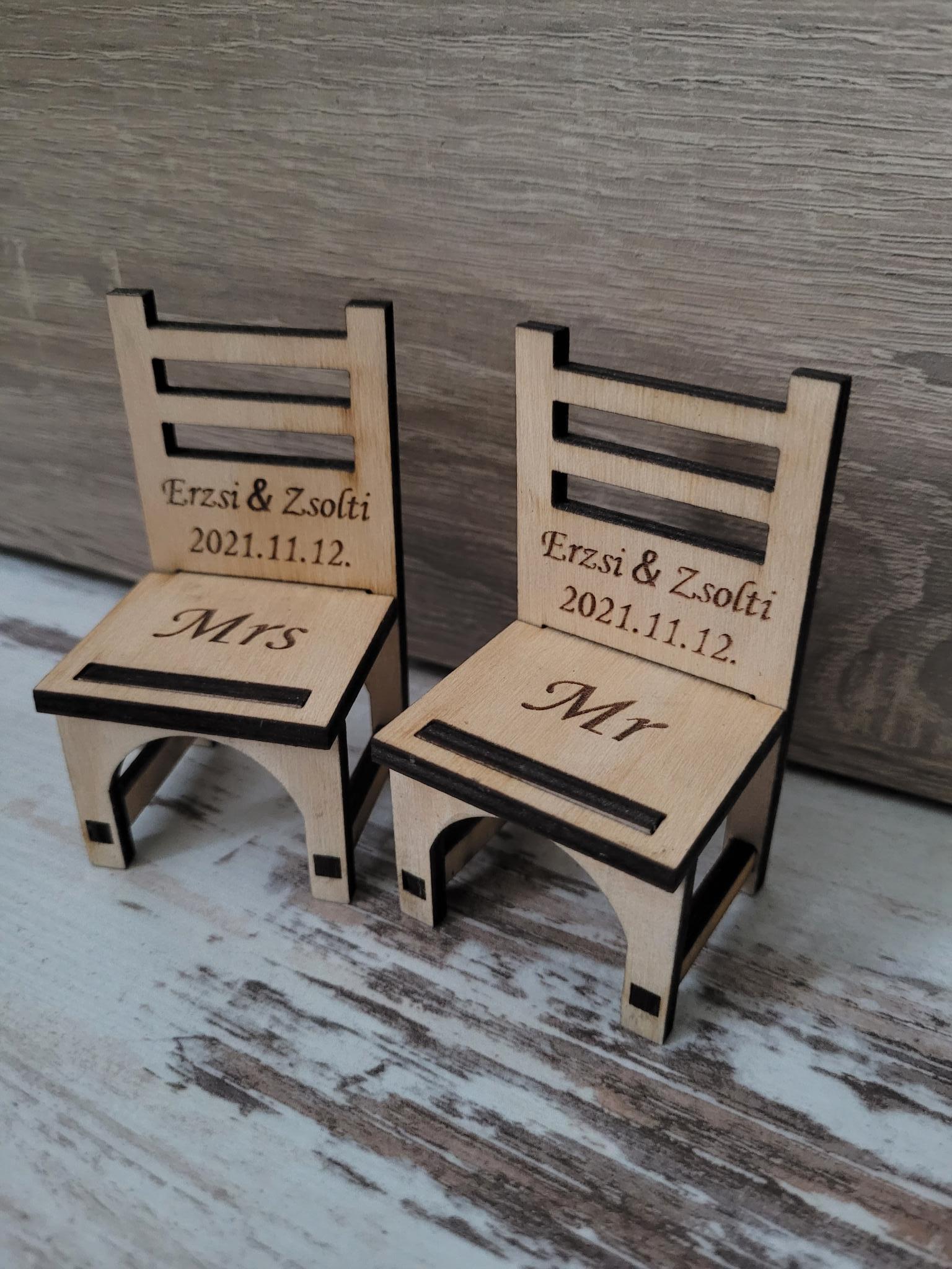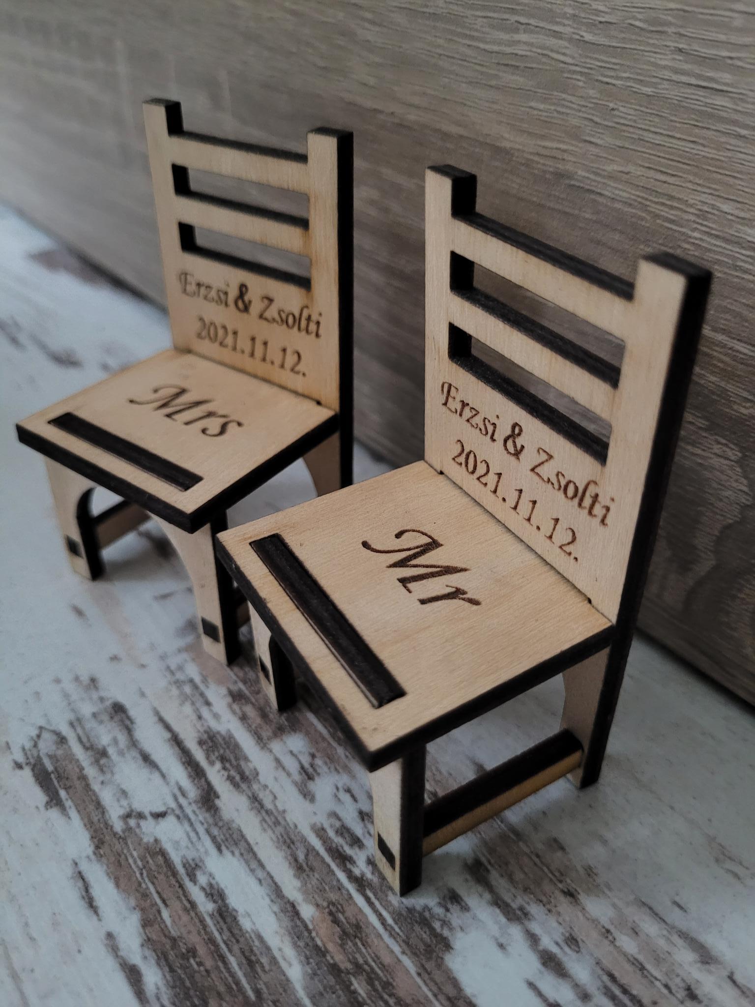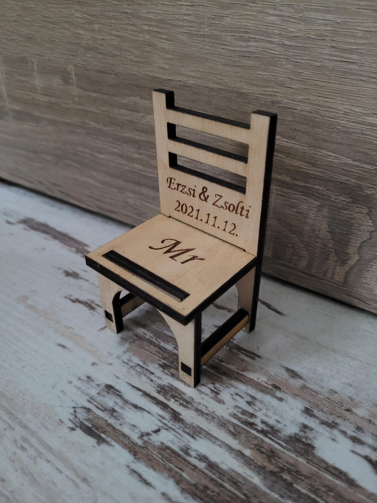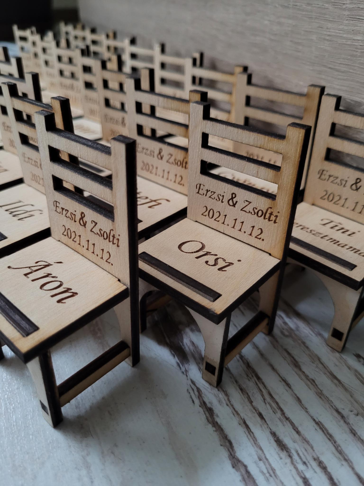 Kisszék köszönetajándék - ültetőkártya - Névvel gravírozva